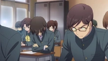 Wenn Yu im Unterricht lacht, sieht man links von ihm eine Hintergrundfigur, die eine Aufnahme später verschwindet.